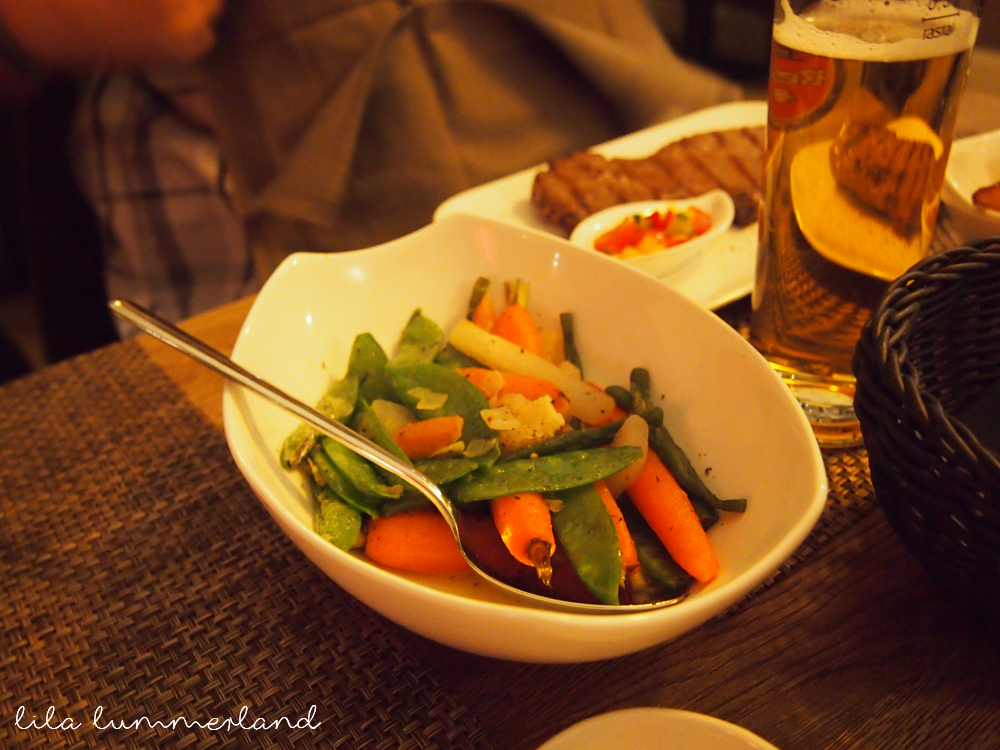 Wer zum Sophienhof fährt, sollte reservieren und dann unbedingt Fleisch bestellen. Salate gibt es zwar auch, aber der Fokus der Küche liegt ganz klar auf dem perfekten Stück Fleisch, das dann beinahe pur und nur mit grobem Salz und Pfeffer gewürzt, zelebriert wird.