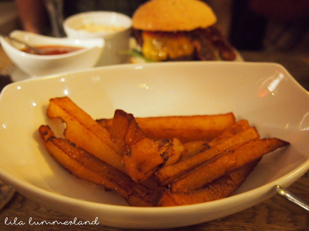 Hüftsteak, T-Bone, Wagyu, Iberico – um nur einige Begriffe zu nennen, mit denen die Karte aufwartet. Jedes Stück Fleisch wird mit Salat oder Pommes serviert. Außerdem kann man verschiedene Beilagen wie gedämpftes Gemüse oder Süßkartoffelfritten und ausgefallene Dip-Kreationen von Limette-Aioli bis Whisky-BBQ dazu bestellen.