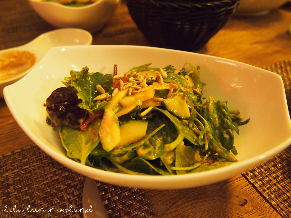 Der Salat kommt zudem mit einer ansprechenden Dressing-Auswahl daher. Das Orangen-Senf-Dressing muss man einfach probiert haben!