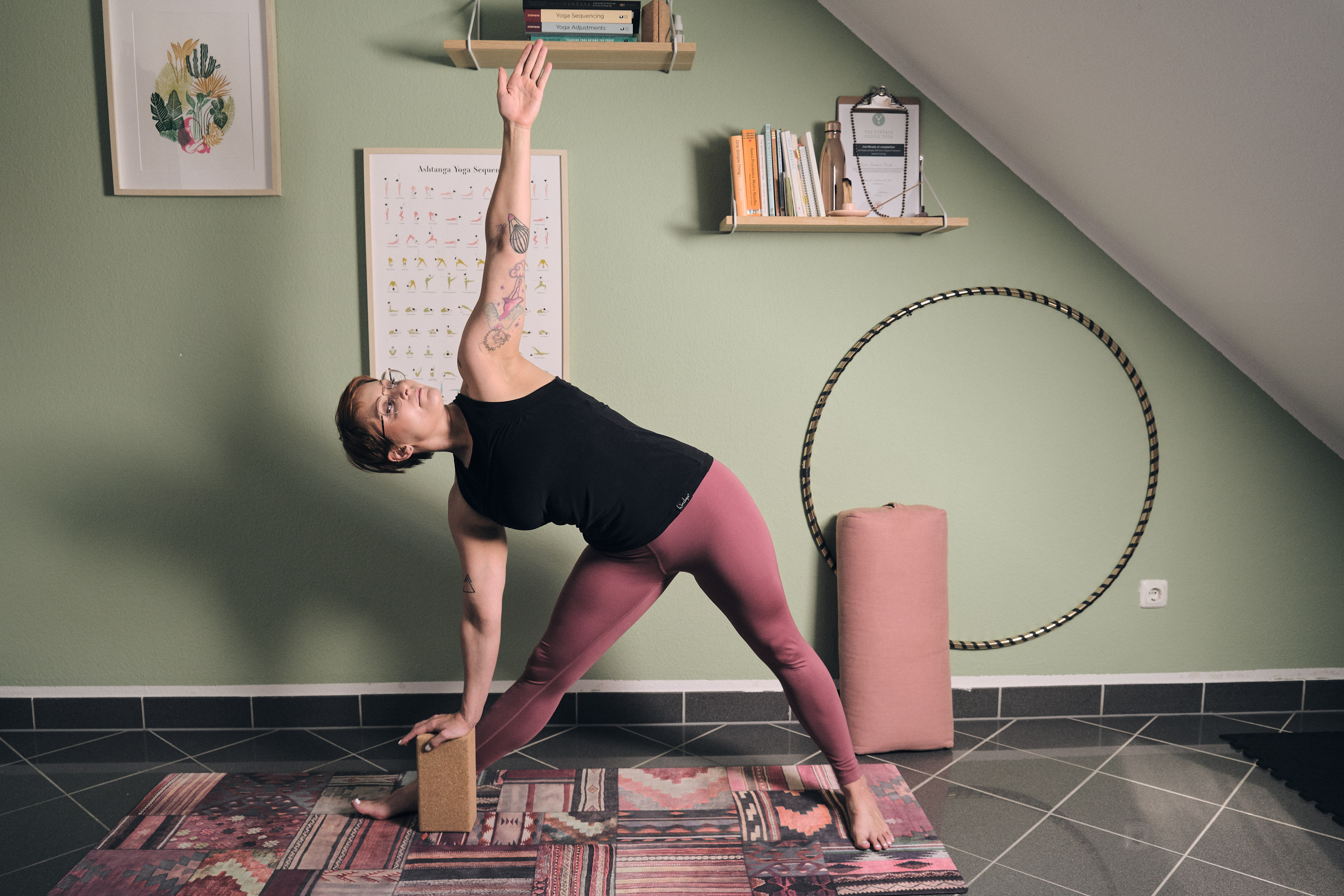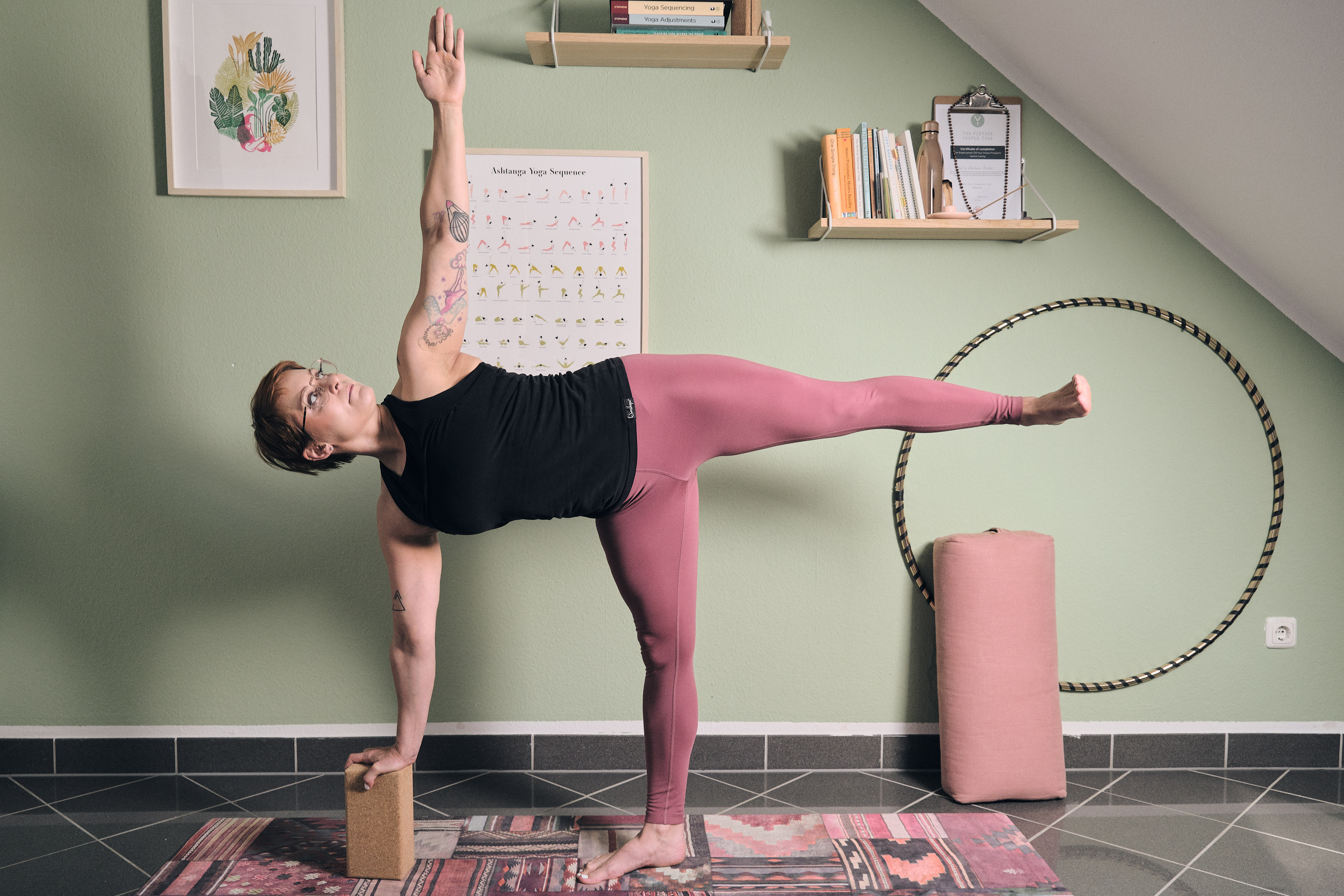 Außerdem können Blöcke sowohl Anfänger:innen als auch routinierten Yoga-Übenden als Reminder dienlich sein: