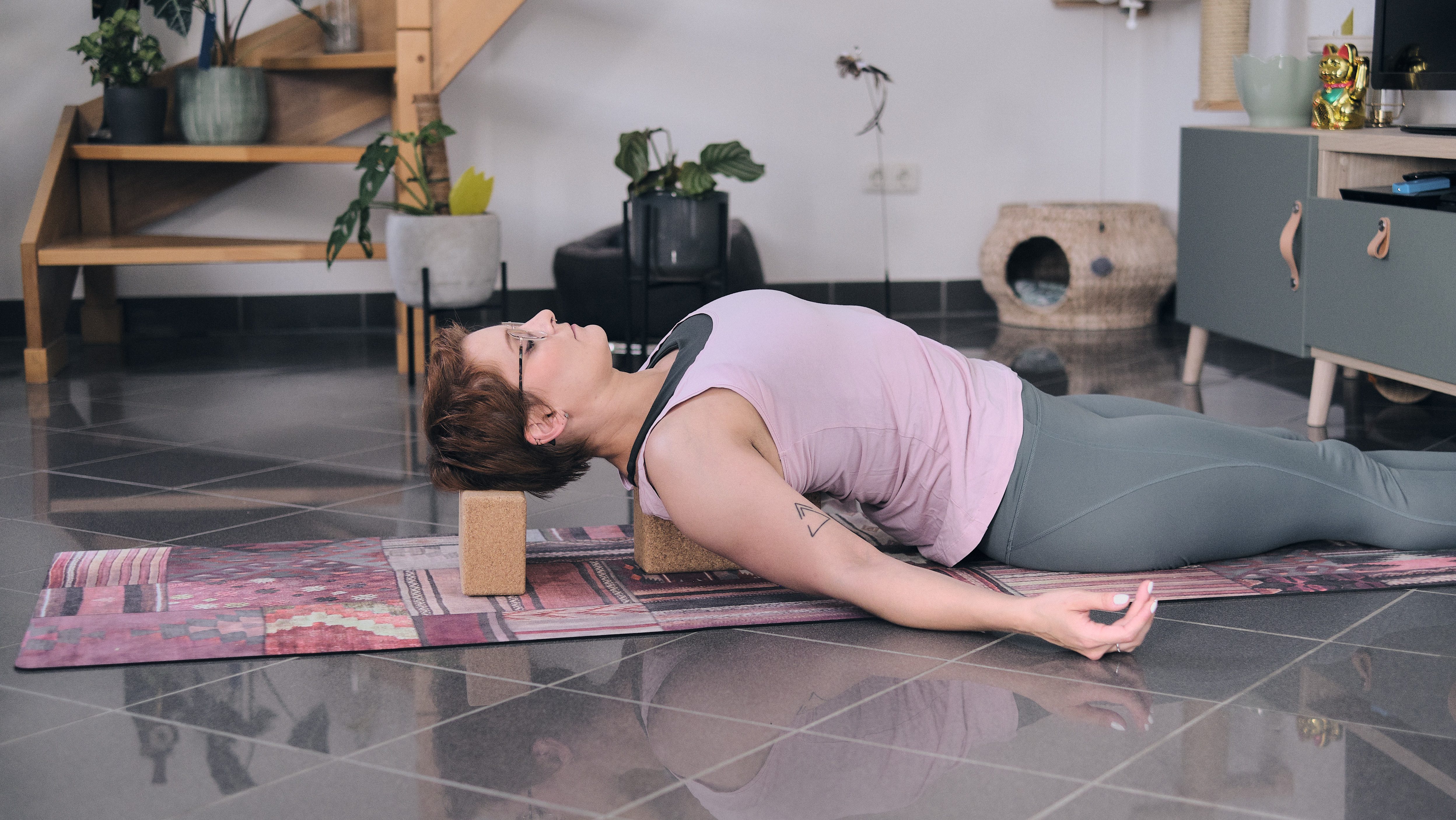 Gerade im Yin Yoga oder auch im Restorative Yoga werden diese unterstützenden Qualitäten der Blöcke besonders in den Fokus gerückt. Und da dürfen es dann auch gerne mal mehr als zwei Blöcke sein. Sie helfen dir, den Körper komplett bequem abzulegen, sodass du jegliche Spannung lösen und in die Posen hineinschmelzen kannst. Dein Körper sollte sich getragen anfühlen.